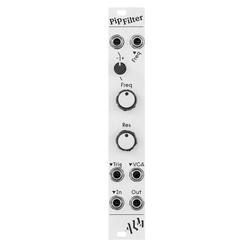 The ‘Pip Filter’ is a compact 4HP voltage controlled 2 pole low-pass filter with resonance, a ‘pingable’ trigger input and built in VCA.