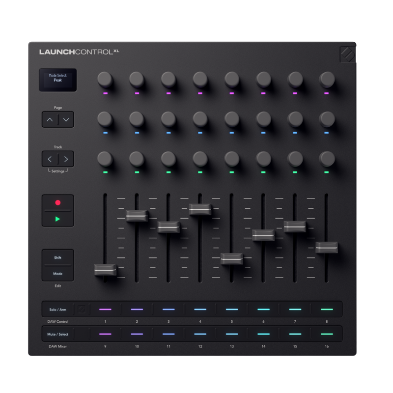 Redesigned from the ground up, the latest Launch Control XL now features eight precise faders, 24 endless rotary encoders, and 16 customisable buttons, alongside dedicated transport controls. A crisp, new OLED display shows you vital, real-time information, right where you need it.